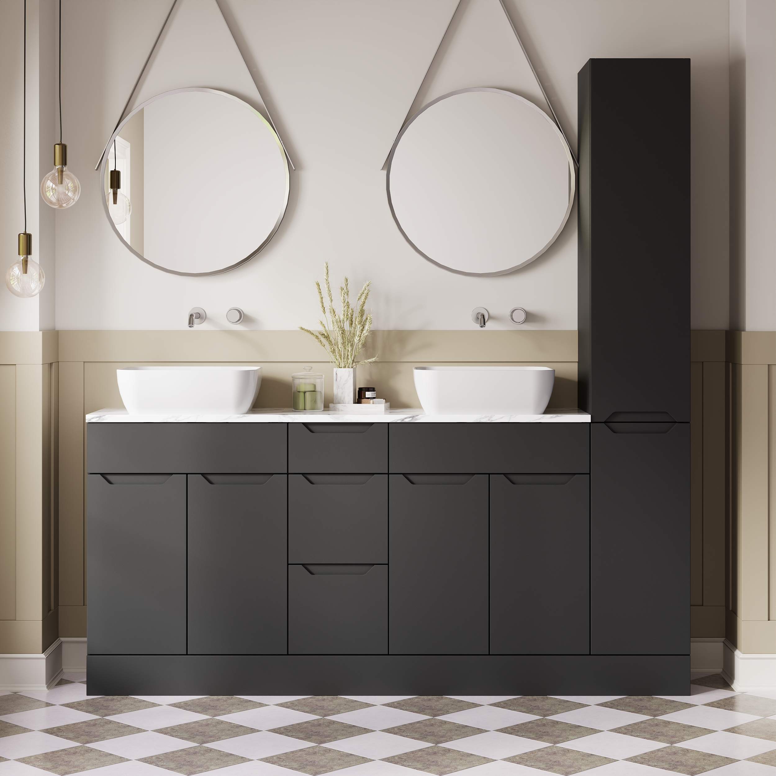 Nuie Lux Loave 1800mm Soft Black Handleless Soft Close Combination Unit With Basin
