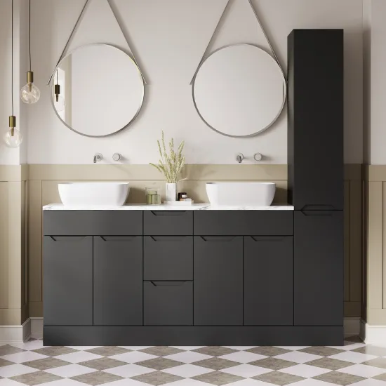 Supplied with a high quality laminate worktop and luxury vessel basin.