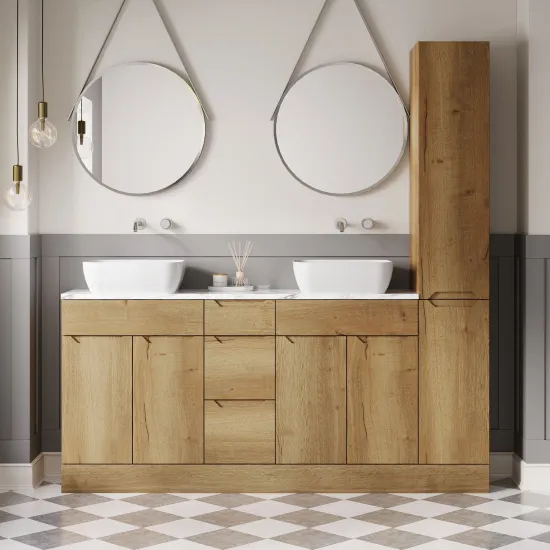 Nuie Lux Loave 1800mm Autumn Oak Combination Unit & Basin with Soft Close Doors & Drawers