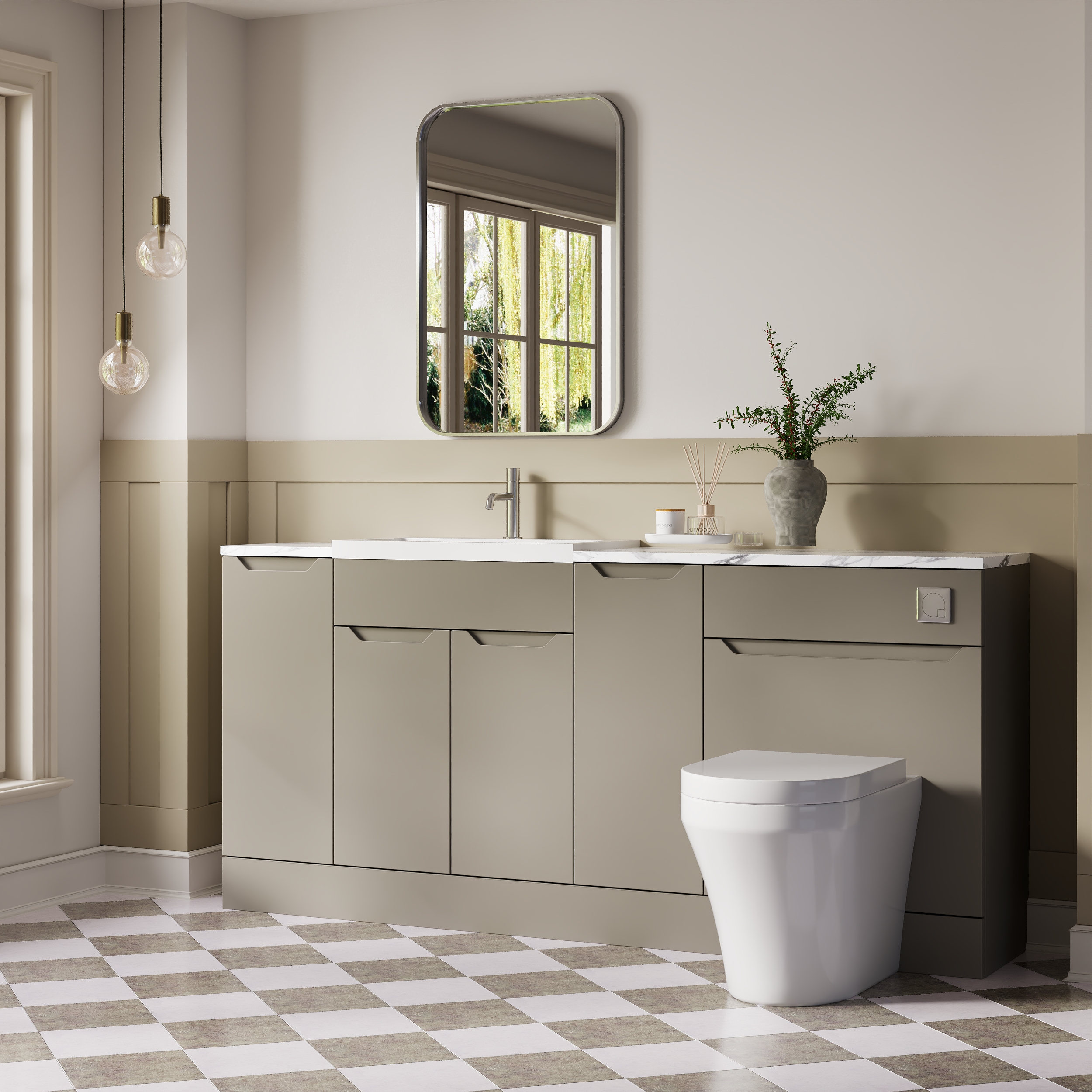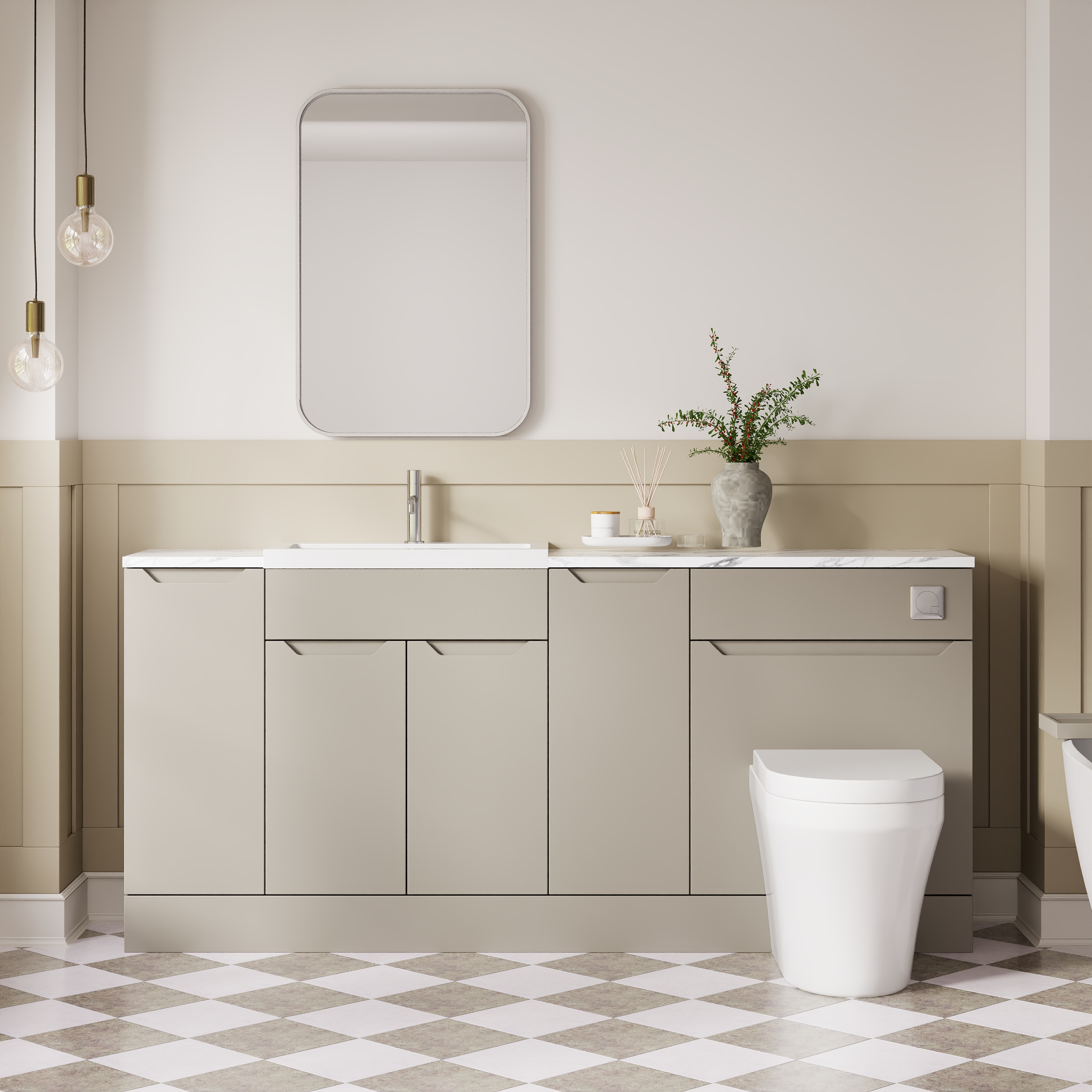 Nuie Lux Loave 1800mm Pebble Grey Handleless Floor Standing Combination Unit & Basin