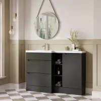 Nuie Lux Fable 1500mm Soft Black Combination Unit With L-Shaped Right Hand Basin
