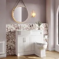 Nuie Lux Krest 1100mm Matt White Combination Unit With L-Shaped Basin - Right Hand