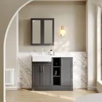 Nuie Lux Fable 1100mm Left Hand Pebble Grey Combination Unit & Basin Rigid Soft Close Doors