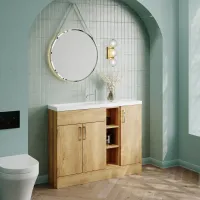 Nuie Lux Fable 1100mm Left Hand Autumn Oak Combination Unit & Basin Rigid Soft Close Doors