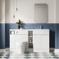 Nuie Lux Fable 1505mm Matt White Left Hand Combination Unit Including L-Shaped Basin & Soft Close Doors