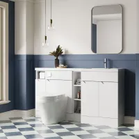 Nuie Lux Krest 1100mm Left Hand Combination Unit with L-Shaped Basin With Soft Close Doors & Drawers