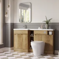 Nuie Lux Loave 1500mm Autumn Oak Left Hand Handleless Combination Unit & L-Shaped Basin With Soft Close Doors