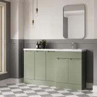 Nuie Lux Loave 1500mm Reed Green Right Hand Combination Unit with L-Shaped Basin & Soft Close Doors