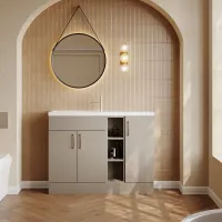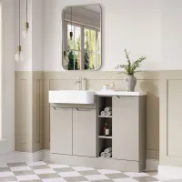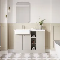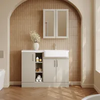 Nuie Lux Fable 1200mm Pebble Grey Combination Unit L-Shaped Basin Left Hand Rigid Soft Close Floor Standing