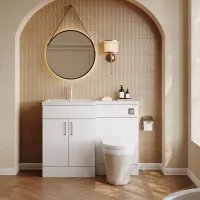 Nuie Lux Krest 1100mm Left Hand Matt White Combination Unit & Basin With Handles