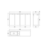 Hudson Reed Fusion 1500mm Gloss Grey Floor Standing 5 Door Right Hand Vanity Basin Combination With Handles