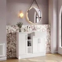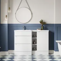 Nuie Lux Fable 1105mm Left Hand Matt White Combination Unit & Basin with Soft Close Doors & Drawers