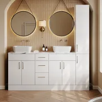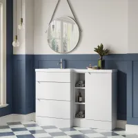 Nuie Lux Fable 1200mm Left Hand Matt White Combination Unit & L-Shaped Basin With Soft Close Doors & Drawers
