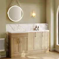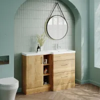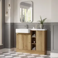Nuie Lux Fable 1500mm Autumn Oak Left Hand Combination Unit with L-Shaped Basin With Soft Close Doors & Drawers