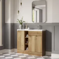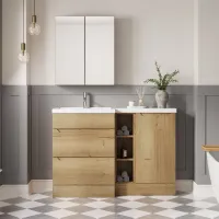 Nuie Lux Loave 1100mm Left Hand Combination Unit & Basin With Soft Close Doors & Drawers, Autumn Oak
