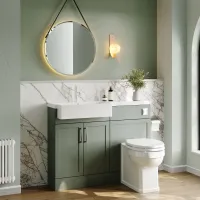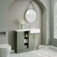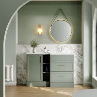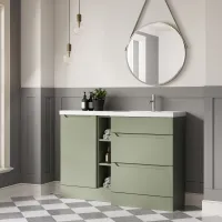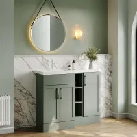 Nuie Lux Fable 1100mm Fern Green Traditional Combination Unit with L-Shaped Basin Right Hand with Soft Close Doors