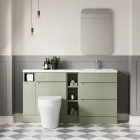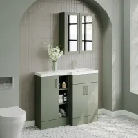 Nuie Lux Fable 1005mm Fern Green Left Hand Combination Unit With L-Shaped Basin Soft Close Doors
