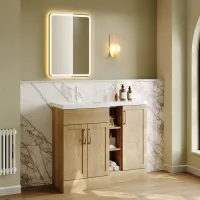 Nuie Lux Krest 1200mm Autumn Oak Combination Unit & Basin - Right Hand With Soft Close & Handles
