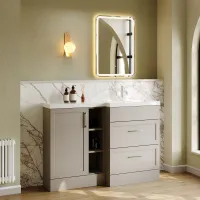 Nuie Lux Krest 1000mm Pebble Grey Combination Unit & L-Shaped Basin Left Hand With Soft Close