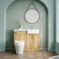 Nuie Lux Krest 1005mm Left Hand Autumn Oak Combination Unit & Basin Rigid Soft Close Doors With Handles