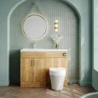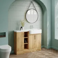 Nuie Lux Loave 1000mm Autumn Oak Right Hand Combination Unit & L-Shaped Basin with Soft Close Doors