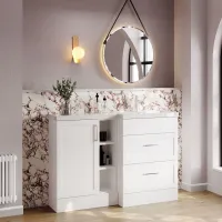 Nuie Lux Fable 1200mm Matt White Right Hand L-Shaped Combination Basin Unit Soft Close
