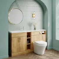 Nuie Lux Fable 1500mm Left Hand Autumn Oak Combination Unit with L-Shaped Basin