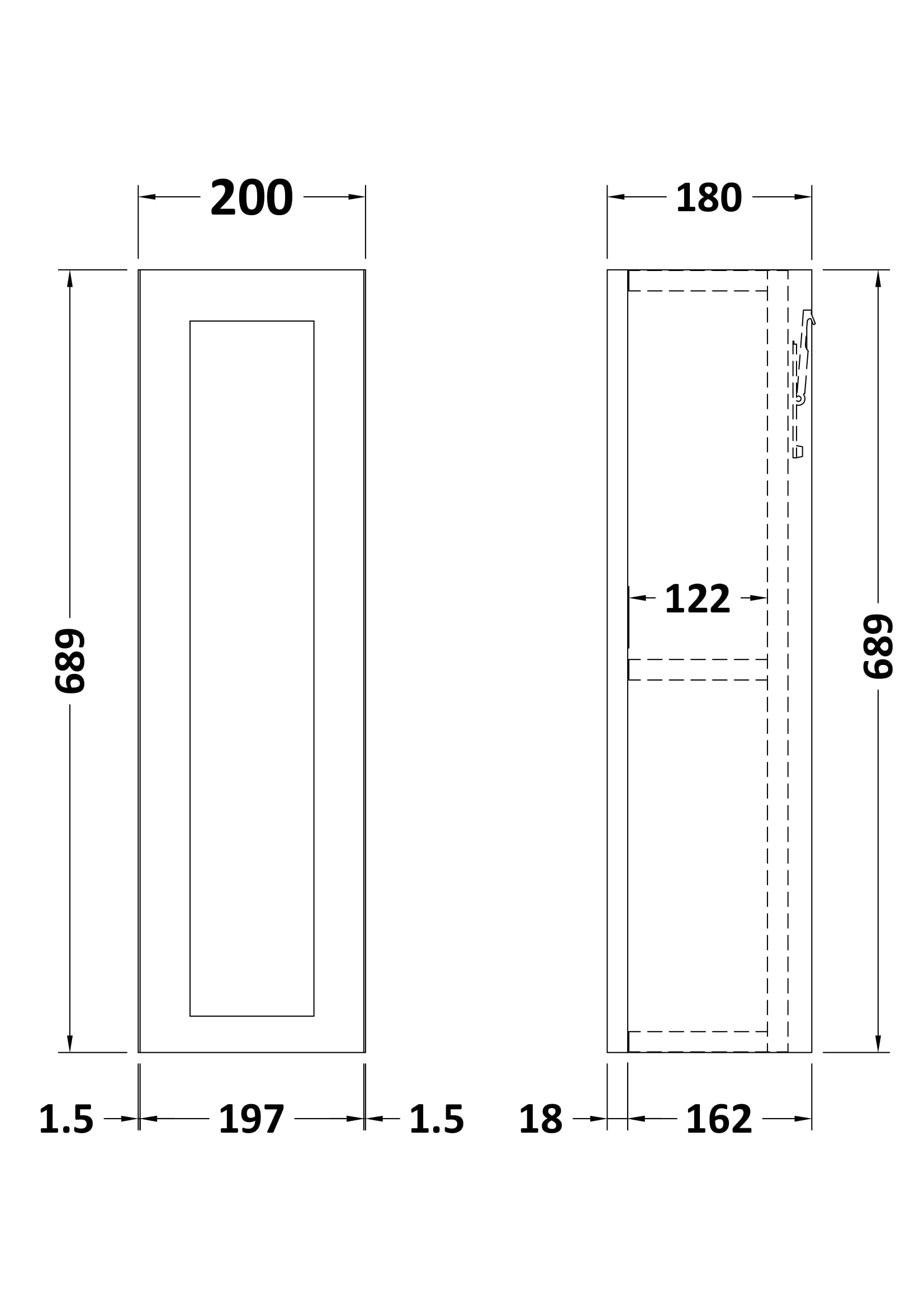 Fable 200mm Shaker Wall Cabinet - 180mm Deep