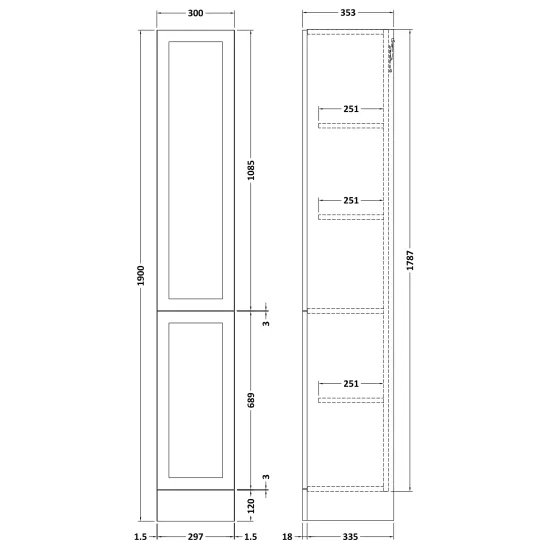 Fable 300mm Shaker Tall Unit - 353mm Deep