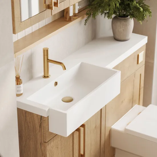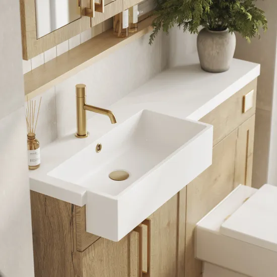 Nuie Lux Fable 600mm Shaker Vanity Unit - 253mm Deep - Autumn Oak