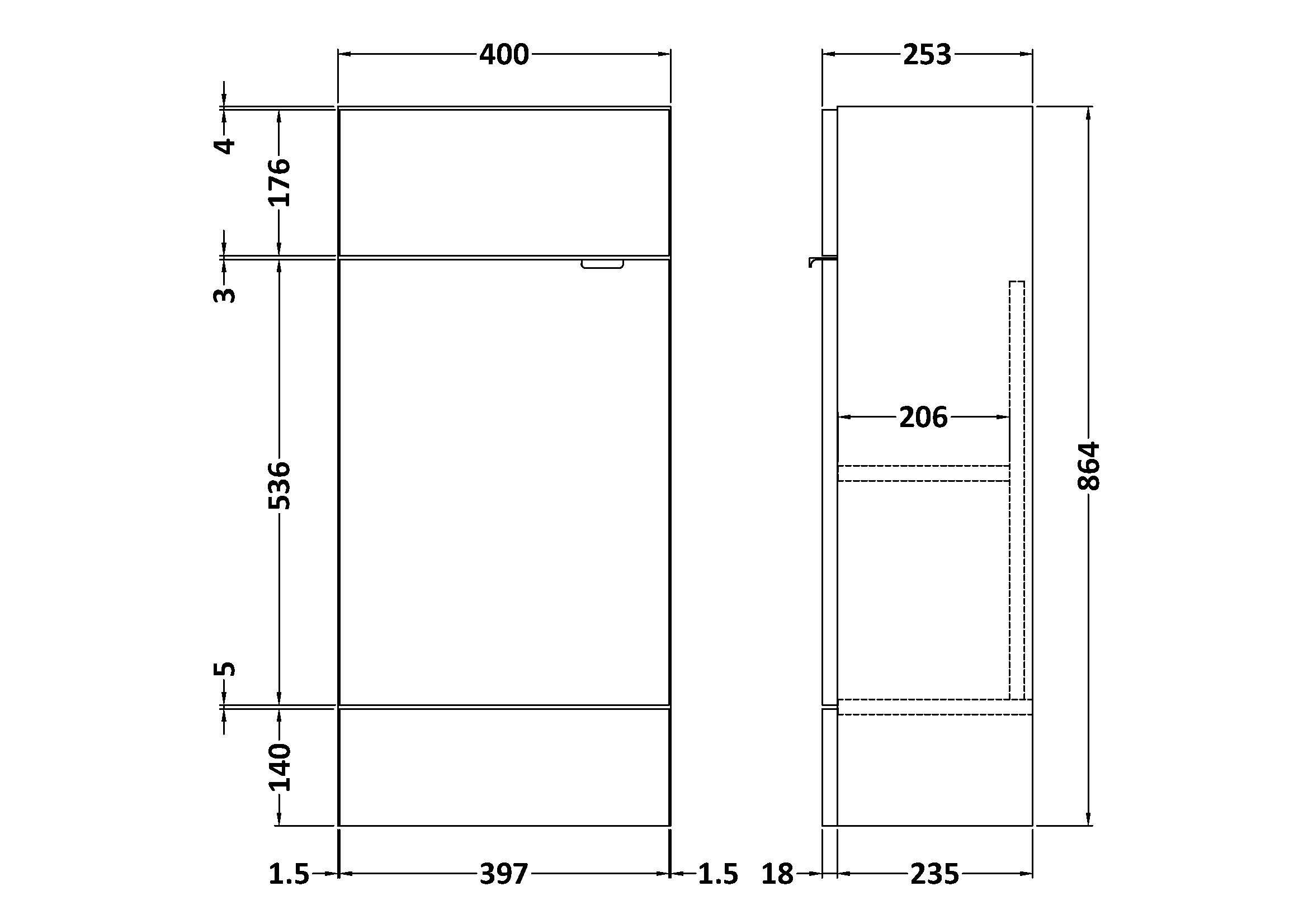 Fusion Fitted Floor Standing 1 Door Vanity Unit Compact 400mm