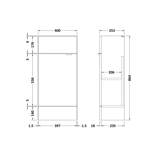 Fusion Fitted Floor Standing 1 Door Vanity Unit Compact 400mm