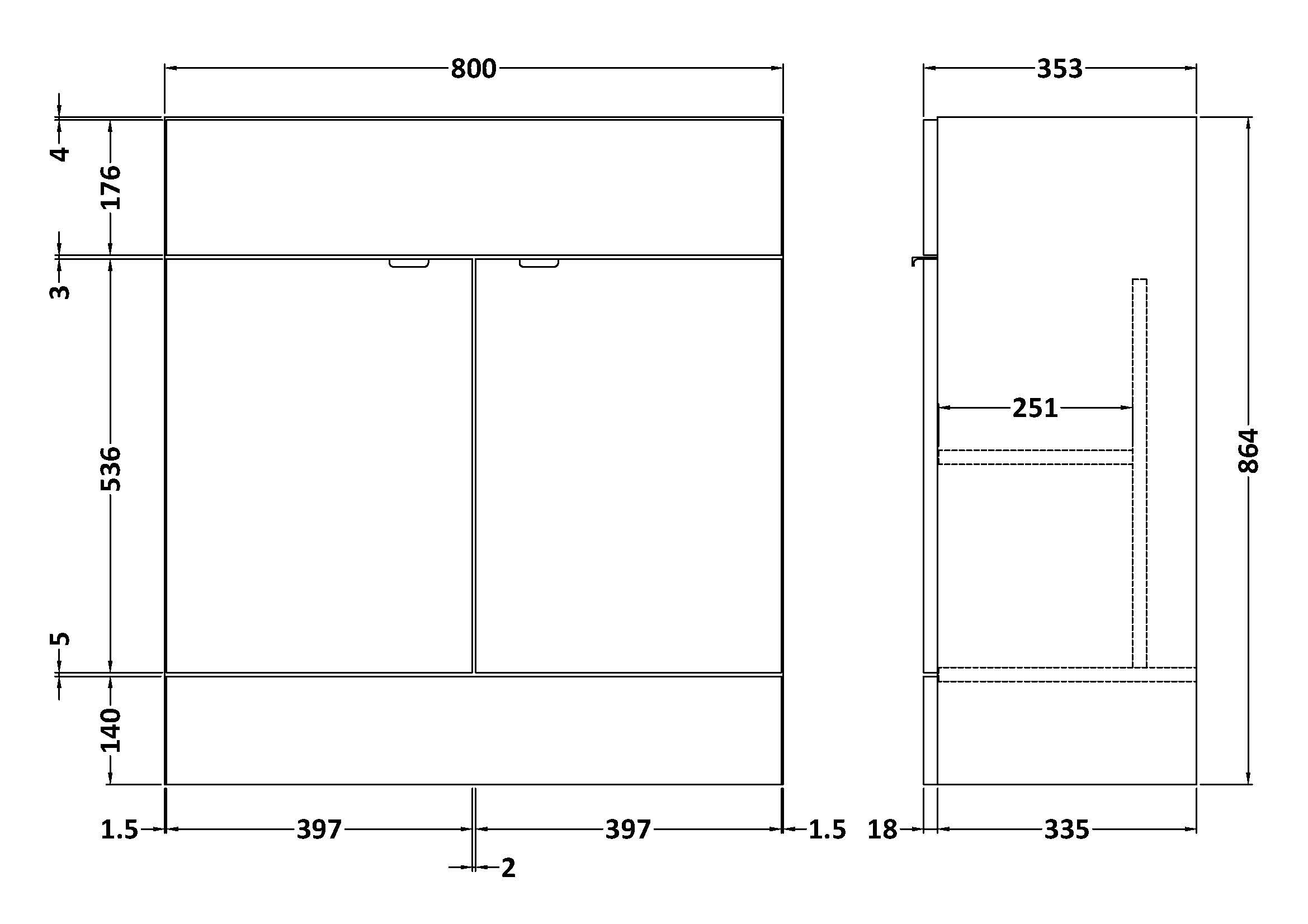 Fusion Fitted Floor Standing 2 Door Vanity Unit 800mm
