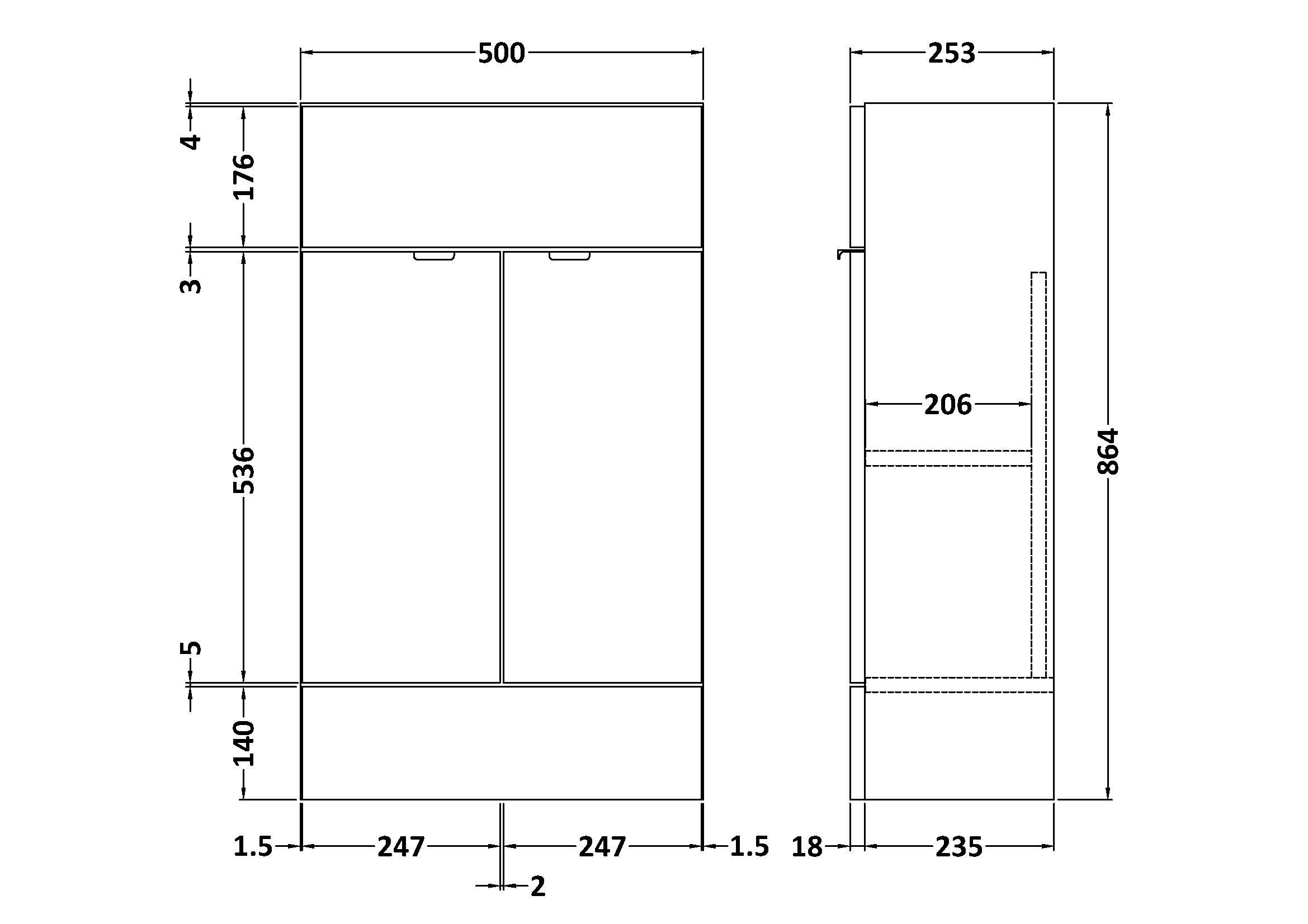 Fusion Fitted Floor Standing 2 Door Vanity Unit Compact 500mm