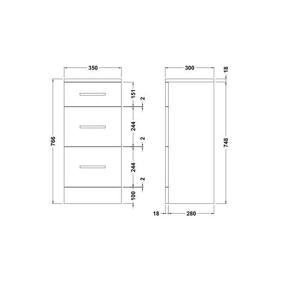 Kass 350 X 300mm 3 Drawer Unit