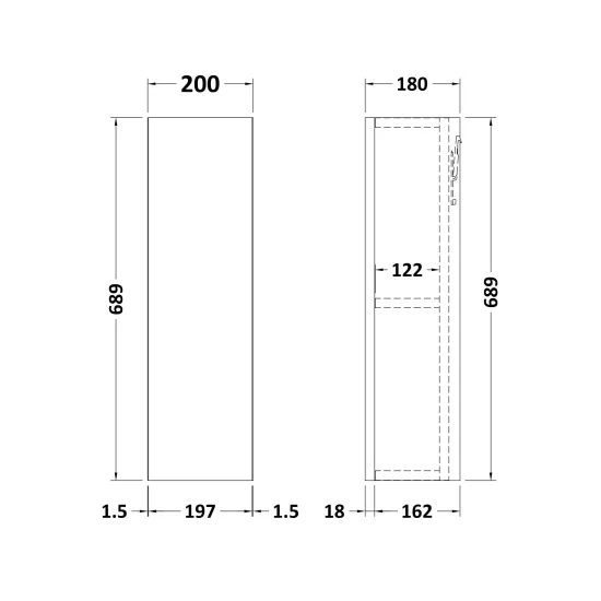 Nuie Lux Krest 200mm 1 Door Soft Black Wall Hung Cabinet