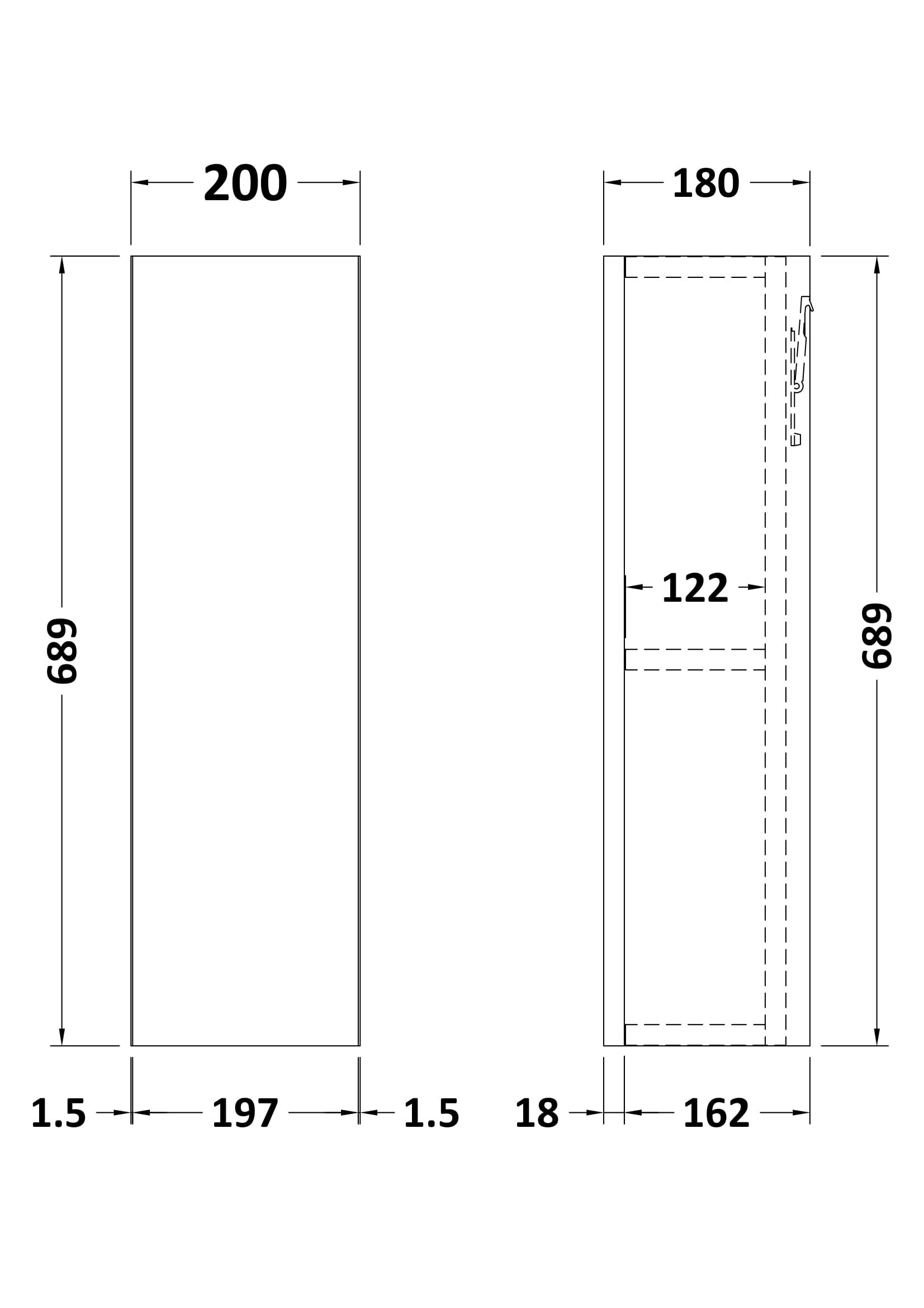 Nuie Lux Krest 200mm Slab Wall Cabinet - 180mm Deep - Pebble Grey