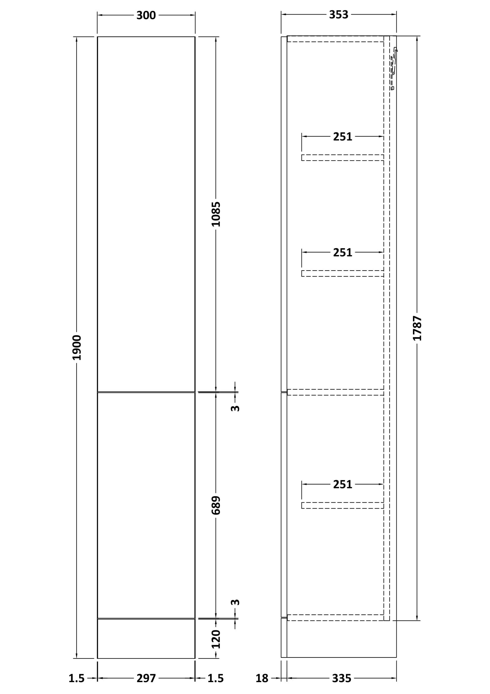 Nuie Lux Krest 300mm Slab Tall Unit - 353mm Deep - Soft Black