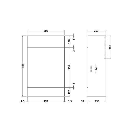 Nuie Lux Krest 500mm Slab WC Unit - 253mm Deep - Pebble Grey