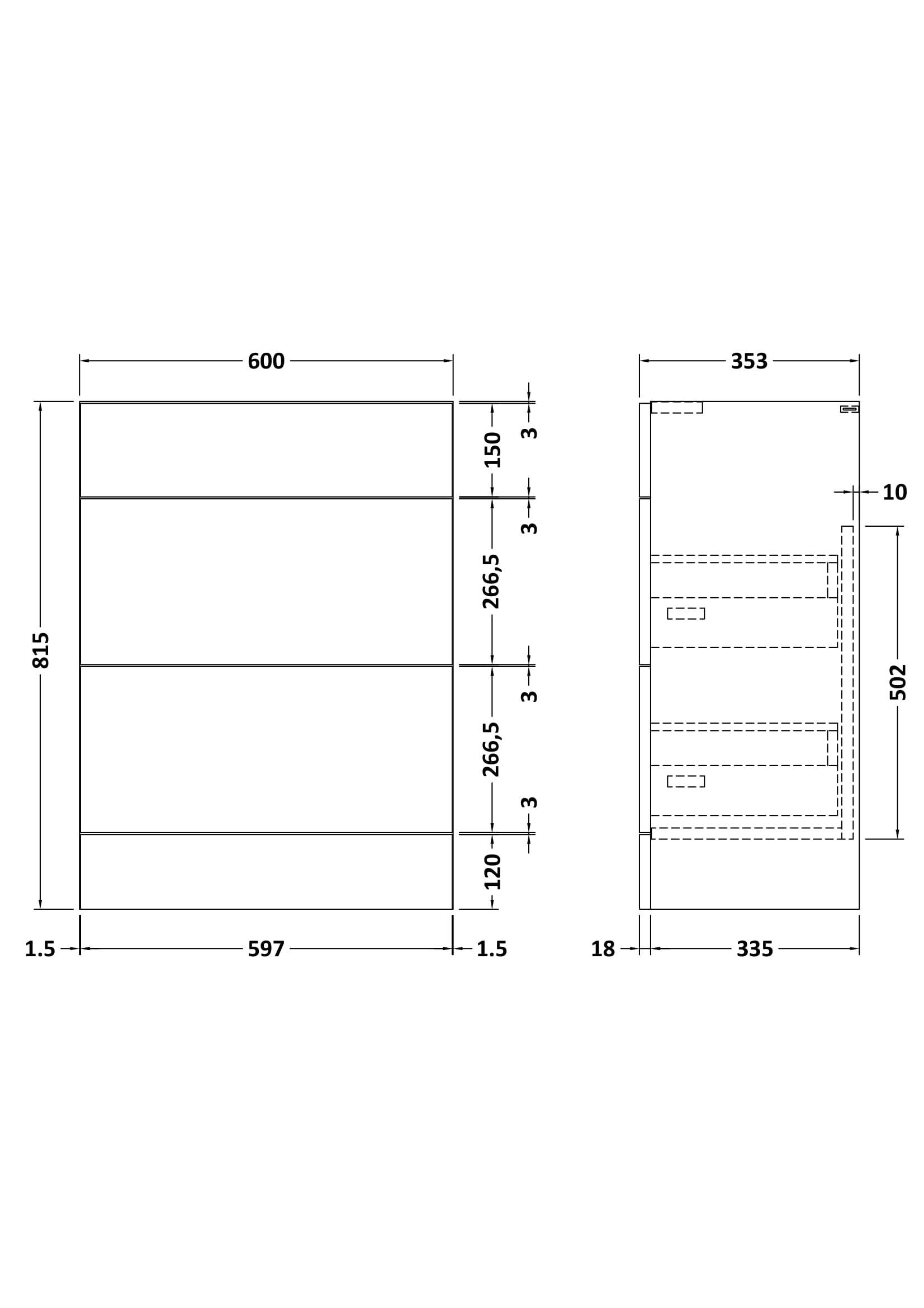 Nuie Lux Krest 600mm Slab Drawer Unit - 353mm Deep - Autumn Oak