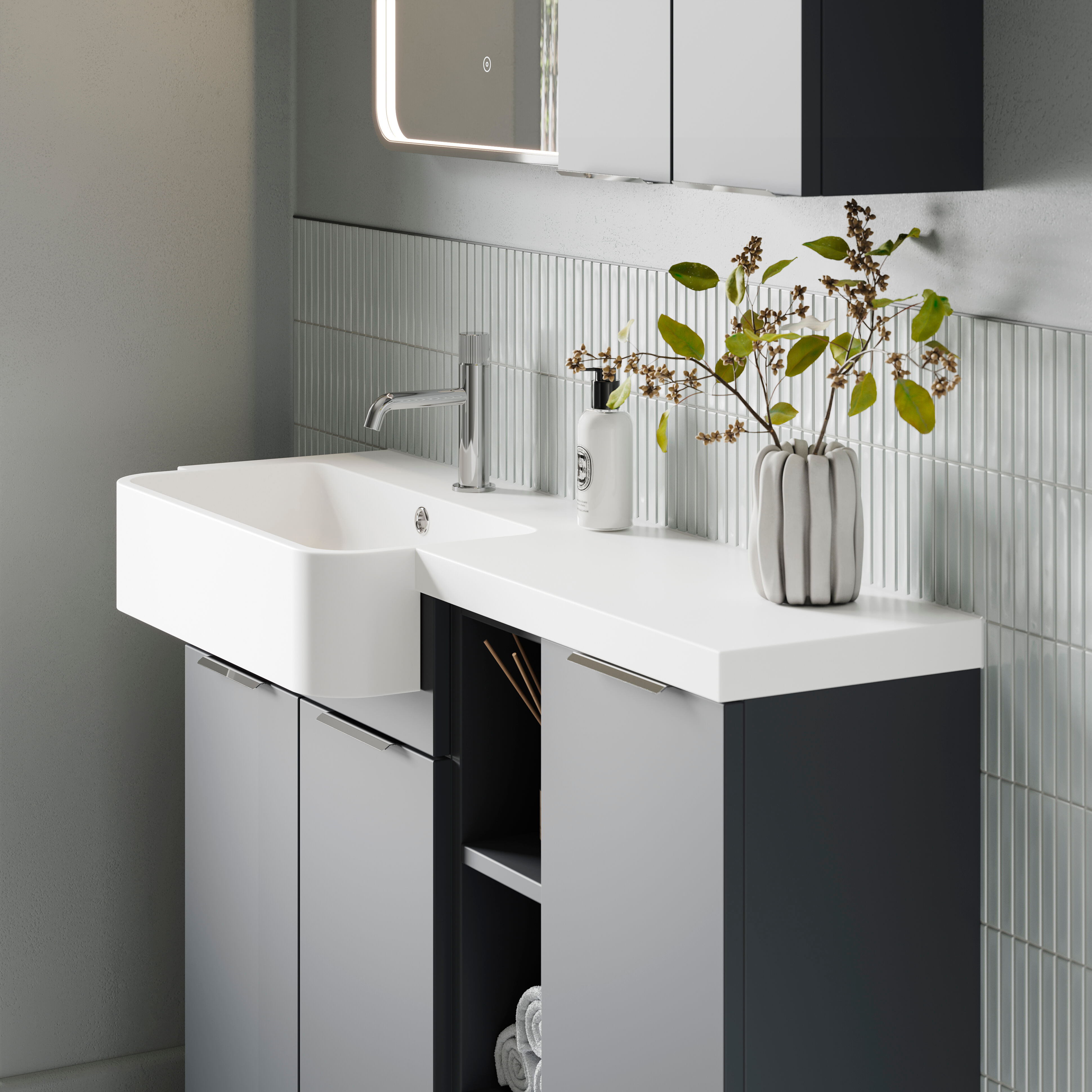Select from a wide range of basins and vessels, as well as stunning furniture handle options.