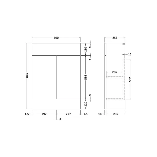 Krest 600mm Slab Vanity Unit - 253mm Deep