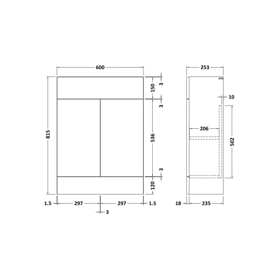 Krest 600mm Slab Vanity Unit - 253mm Deep