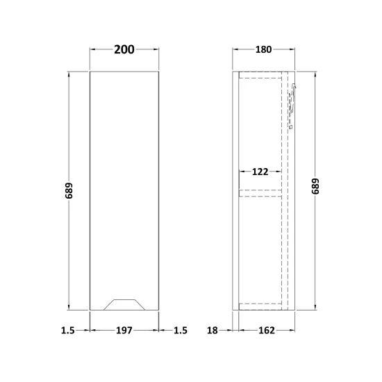 Nuie Lux Loave 200mm Handleless Wall Cabinet - 180mm Deep - Soft Black
