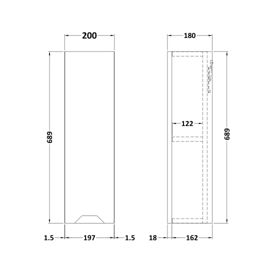 Loave 200mm Handleless Wall Cabinet - 180mm Deep