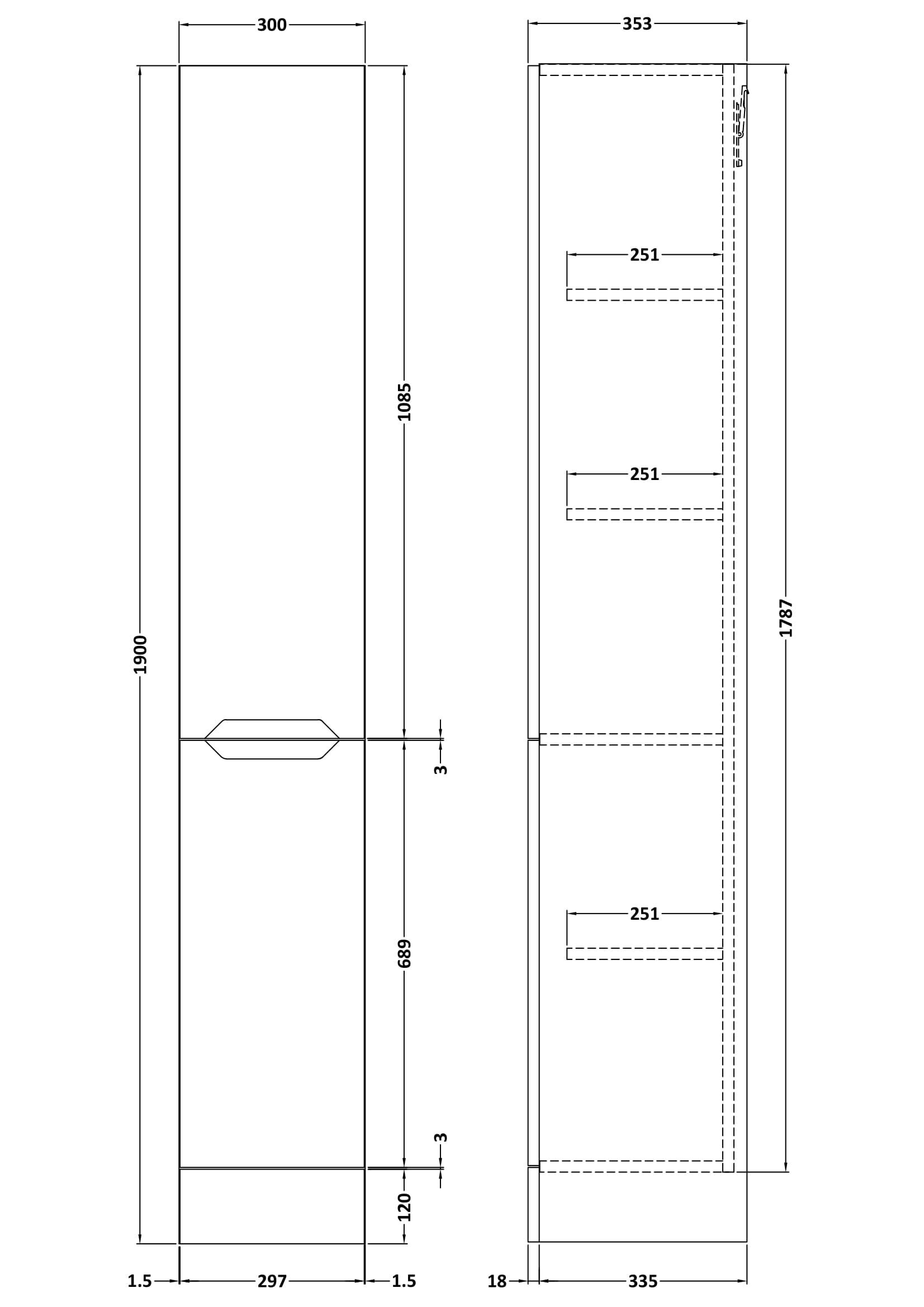 Nuie Lux Loave 300mm Handleless Tall Unit - 353mm Deep - Matt White