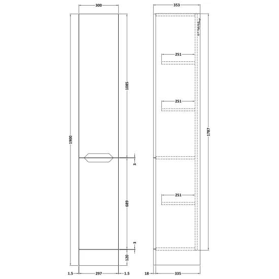 Nuie Lux Loave 300mm Handleless Tall Unit - 353mm Deep - Pebble Grey