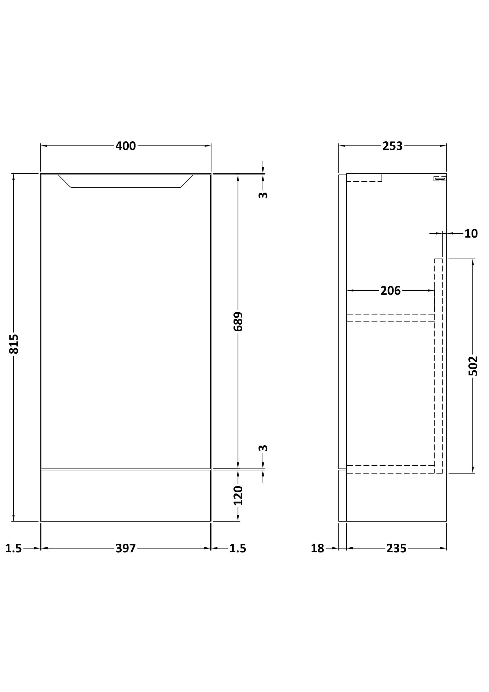 Nuie Lux Loave 400mm Handleless Base Unit - 253mm Deep - Matt White