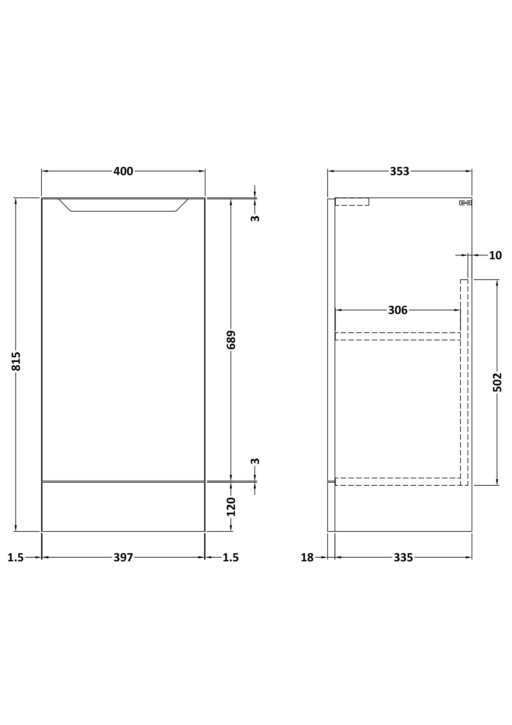 Nuie Lux Loave 400mm Handleless Base Unit - 353mm Deep - Soft Black