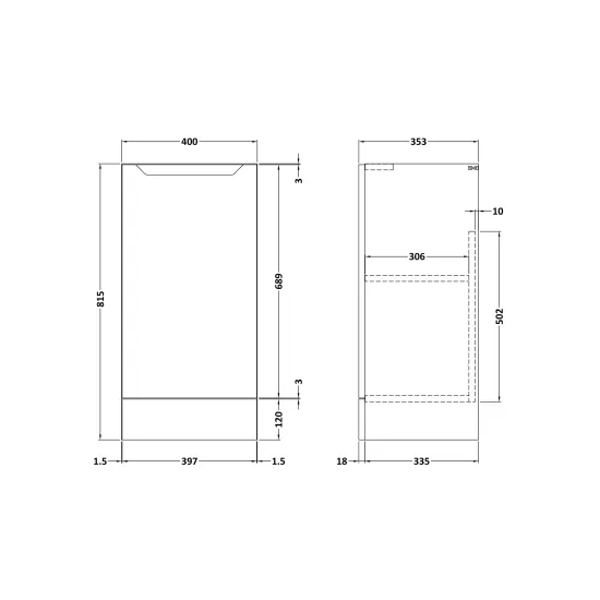 Loave 400mm Handleless Base Unit - 353mm Deep